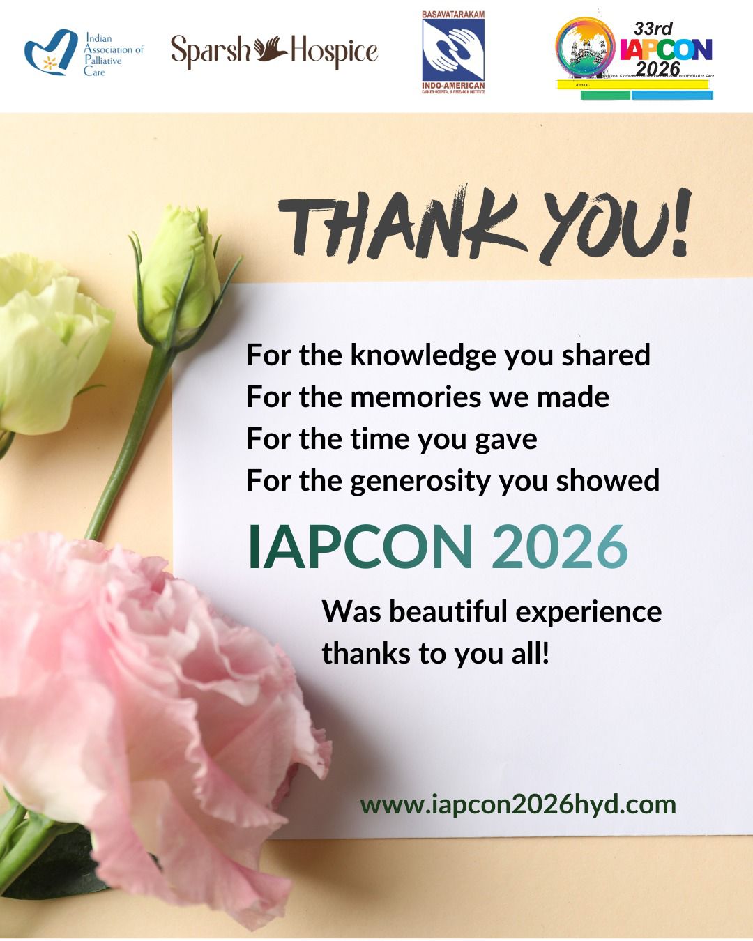 This prestigious conference is being organized by Sparsh Hospice – Centre for Palliative Care and Basavatarakam Indo American Cancer Hospital & Research Institute at the National Institute for Micro, Small, and Medium Enterprise (NI-MSME), Hyderabad, from 13th to 15th February 2026. The pre-conference workshops are scheduled to be held on 12th February, 2026.